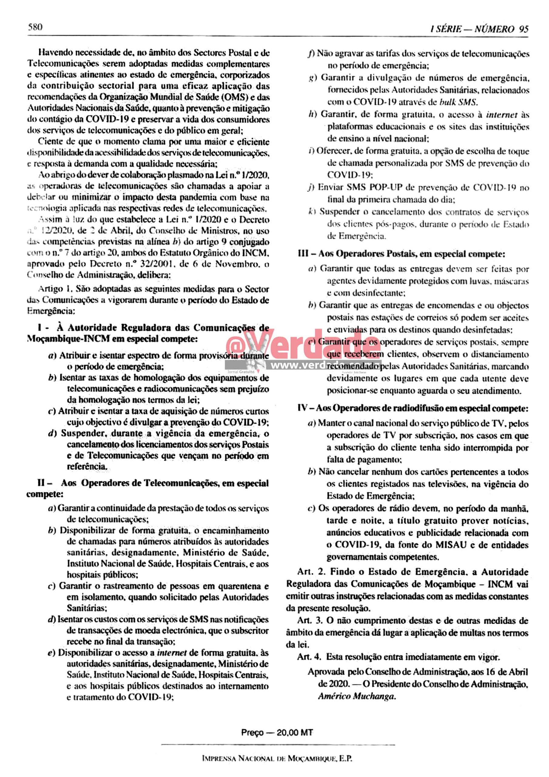 Durante a vigência do Estado de Emergência em Moçambique todos os provedores de internet, incluindo as operadoras de telefonia móvel, devem “garantir, de forma gratuita,