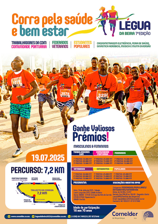 A sétima edição da Légua da Beira, uma das mais emblemáticas provas de atletismo do País, promovida pela concessionária do Porto da Beira, Cornelder de Moçambique (CdM), vai decorrer no próximo dia 19 de Julho, com a participação de 3.750 atletas, nacionais e estrangeiros.