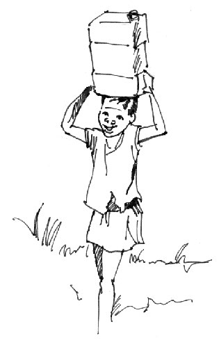 São 9h00 e o pequeno Sidney, uniformizado e de chapéu na cabeça para se proteger do sol, põe-se na estrada de terra batida e empoeirada que liga o bairro de Intaca à Vila Pouca. O desafio é enorme, pois naquela via circulam vários camiões de grande tonelagem que transportam areia vermelha para a construção da nova estrada.