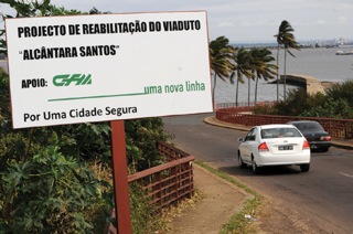 Tudo é ainda mais paradoxal se no início da descida se atentar na placa que diz: “Projecto de reabilitação do viaduto ‘Alcântara Santos’ – Apoio CFM – Por uma cidade segura”.