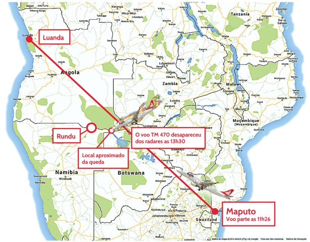 O voo TM 470 desapareceu dos radares às 13h30 de sexta- feira (29), numa altura em que voava a uma altitude de 36.000 pés. Há informações segundo as quais na altura em que desapareceu dos radares da torre de controle do Botswana caía a 5 mil pés por minuto. Os destroços do avião só viriam a ser localizado na manhã de sábado, apesar do alerta ter sido dado às 14 horas de sexta-feira. Segundo as autoridades de tráfego aéreo da Namíbia, citadas pelos jornal The Namibian, a demora deveu- -se à falta de informação por parte das autoridades do Botswana que acompanhavam o voo nos seus radares.