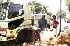 Com a primeira etapa ultrapassada, não está tudo consumado, pois segue-se a fase de transporte do produto do interior até à estrada nacional, o que é feito em carrinhas de uma tonelada e meia, com apenas capacidade para carregar até 1500 cocos, contra o pagamento de 250 a 350 meticais, dependendo da zona de proveniência.