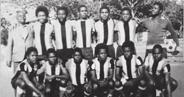 Não sei bem porquê, mas de uma forma geral, sempre tive propensão para jogar em equipas sem gabarito. É o caso do Nacional Africano, que abracei por uma questão nacionalista. Tornei-me um dos principais entusiastas, “resistindo” a convites dos grandes clubes. Mais tarde, o Nova Aliança — também dos subúrbios — numa altura em que constituímos a mais forte equipa de sempre daquele clube, ao lado de Gil, Mesquita, Humberto Matsolo, Mandoviana e outros. Seguiu-se o Benfi ca (hoje Costa do Sol), sob as ordens de Martinho de Almeida, já próximo da Independência Nacional. Mas no pensamento ainda pairava um eventual regresso no futebol português, para tentar a sorte no Benfica.