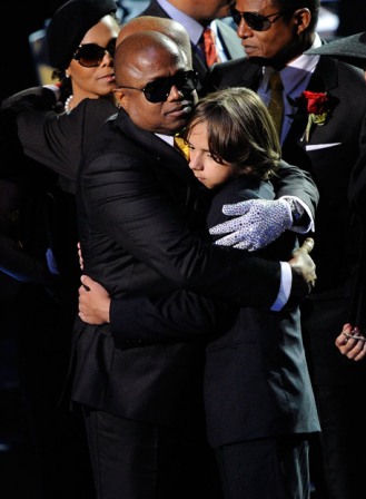 Paris e seus irmãos, Prince Michael I, 12, e Prince Michael II, 7, foram ao Staples Center acompanhados dos avós e tios. No fim, subiram ao palco com várias estrelas da música e membros da família que se reuniram para cantar “We are the World”. Assim que foi concluída a cerimônia, o caixão onde estava o cantor foi levado em comboio para um destino desconhecido.