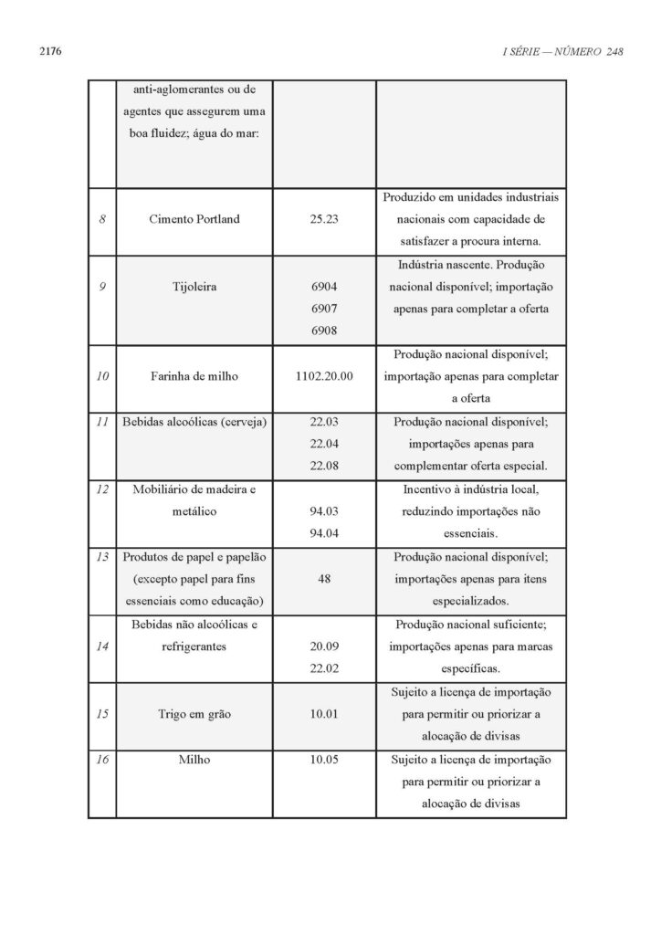 Contudo o Decreto do Conselho de Ministros, datado de 29 de Dezembro, que legaliza as restrições à importação de carne e miudezas de aves, arroz, açúcar, óleo de palma, água engarrafada, massas alimentícias, sal, cimento, tijoleira, farinha de milho, cerveja, mobílias, papel, trigo e milho em grão, bebidas não alcoolicas e de refrigerantes condiciona a entrada em vigor da decisão a um “Diploma Ministerial conjunto dos Ministros que superintende as áreas do Comércio Externo e das Finanças” que ainda não existe.