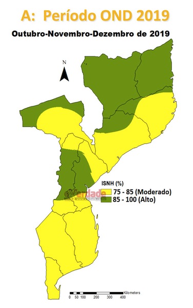 O MASA espera que o Índice de Satisfação da Necessidade Hídrica (ISNH) nas províncias de Niassa e Cabo Delgado seja alto (85 à 100 por cento) e na província de Nampula, ISNH moderado (75 à 85 por cento) entre Outubro e Dezembro, situação que deverá manter-se até Março de 2020.
