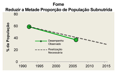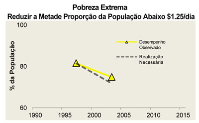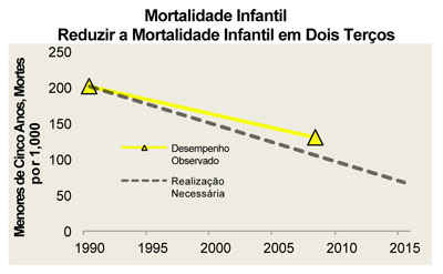 No gráfico acima a linha tracejada indica a “performance” necessária para o cumprimento desta meta e a linha amarela indica o cumprimento em curso que está abaixo da meta meta recomendável. Fonte: World Bank, World Development Indicators 2010