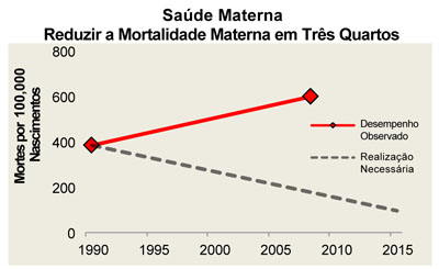 No gráfico acima a linha tracejada indica a “performance” necessária para o cumprimento desta meta e a linha vermelha indica o incumprimento actual. Fonte: World Bank, World Development Indicators 2010