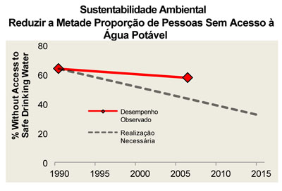 No gráfico acima a linha tracejada indica a “performance” necessária para o cumprimento desta meta e a linha vermelha indica o incumprimento actual. Fonte: World Bank, World Development Indicators 2010.