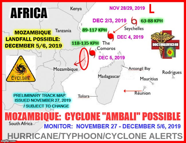 Embora exista ainda “grande incerteza em relação a sua trajetória” os meteorologista aventam a possibilidade da Tempestade Tropical Moderada baptizada provisoriamente de “Ambali” entrar no território moçambicano no próximo dia 2 pela Província de Cabo Delgado e aí poderá evoluir para Tempestade Tropical Severa fustigando também a Província de Nampula no dia 4.
