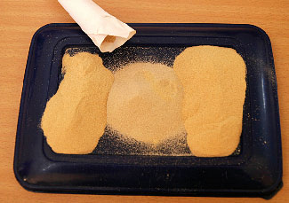 Findo este processo, o produto é retirado e imediatamente pilado com alguns gramas de um detergente até ficar completamente mole, para em seguida se deixar arrefecer. Daí é embalado em papel com o formato de funil e revendido nas diversas bancas dos bairros da cidade de Maputo e seus arredores aos preços de 50 centavos e 1 metical, conforme a medida. De acordo com dados recolhidos, uma lata de 20 quilogramas de areia chega a render cerca de 500 meticais.
