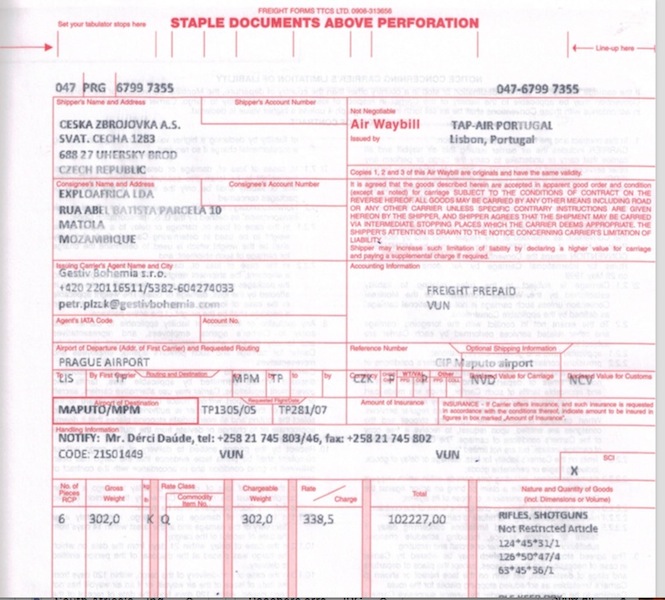 Importa salientar que a importação destas armas fabricadas na República Checa para Moçambique, algumas com passagem por Portugal, obdece aos requisitos que a lei do nosso país impõe com autorização do Ministério do Interior.