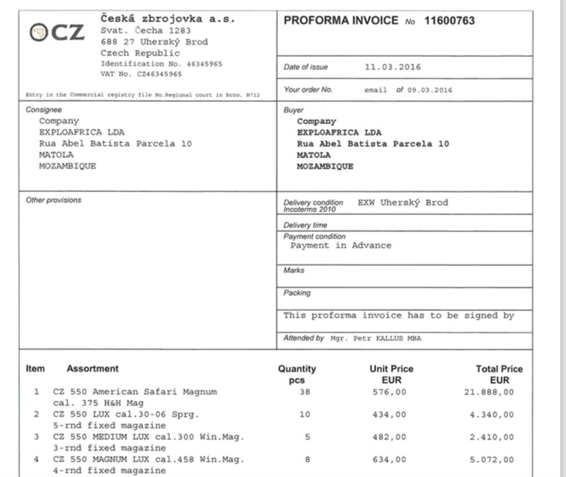 À investigação da Conflict Awareness Project determinou, e a Ceská zbrojovka Uherský Brod confirmou, que centenas de carabinas de calibre 375 e 458 apreendidas na África do Sul, e identificadas pelos seus números de séries, haviam sido vendidas às empresas Cacicambria, Fabitrade, Fabicaça e ExploAfrica.