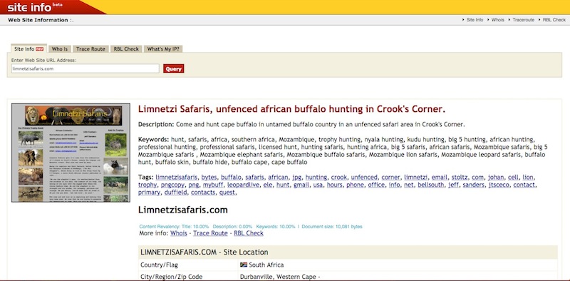 Entretanto em 2010 a Investcon de Johan Rudolph Stoltz, Gabriel Petrus Stoltz e Eugénio Numaio adquiriu uma fazenda do bravio no Norte da Província de Gaza, na fronteira entre a África do Sul e o Zimbabwe, a Limnetzi. Virada para ricos caçadores dos Estados Unidos da América a publicidade da Limnetzi prometia caçadas de crocodilos, búfalos, elefantes e rinocerontes.