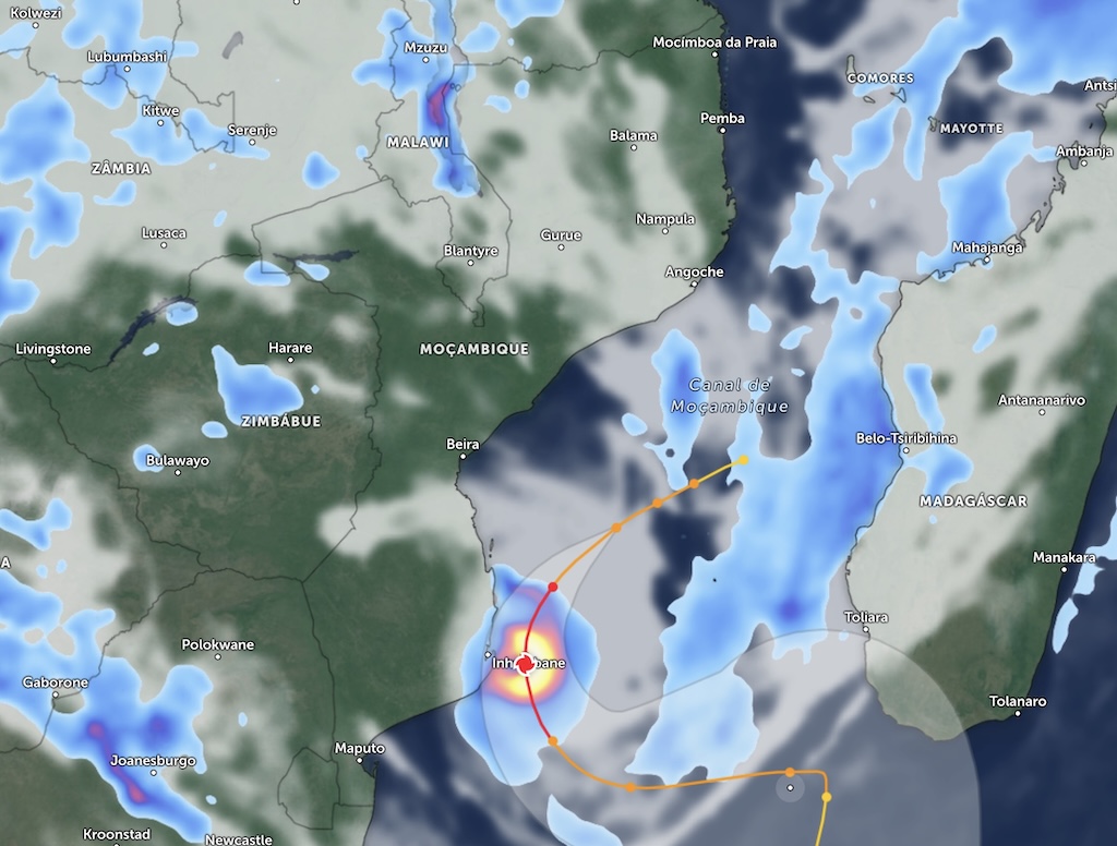 O Ciclone Tropical “Gezani”, continua a se mover em direcção à costa da província de Inhambane, com epicentro a 100 quilómetros da costa do distrito