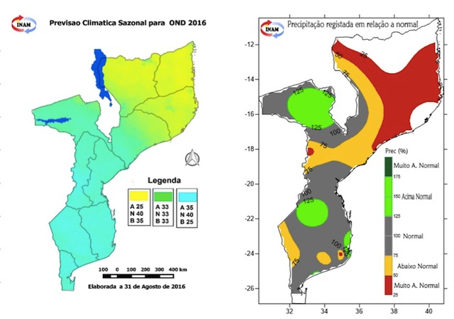 Em Setembro passado foi apresentado o prognóstico para a próxima Época Chuvosa, que deverá estender-se entre Outubro de 2017 e Março de 2018, num trabalho que pelo quarto ano consecutivo é realizado pelo Fórum Nacional de Antevisão Climática – órgão que integra o Instituto Nacional de Meteorologia (INAM), a Direcção Nacional dos Recursos Hídricos, a Direcção Nacional de Saúde Pública, a Direcção Nacional de Agricultura e Silvicultura e o Instituto Nacional de Gestão de Calamidades.