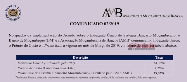 No seguimento dos “riscos e incertezas” evocados pelo Banco de Moçambique (BM) para interromper a redução das taxas de referência a Prime Rate do Sistema Financeiro para o mês de Março é a mesma do mês passado. Indiferentes ao “pós-crise” político continuam os bancos comerciais que não mexem nos seus spreads desde Outubro de 2018.