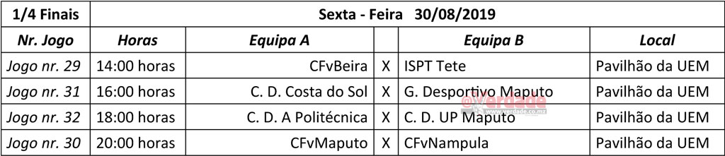 Nesta sexta-feira jogam-se os quartos-de-final no pavilhão da UEM: