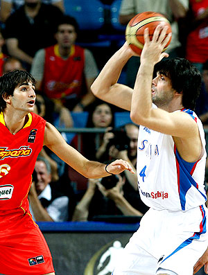 No último ataque do jogo, a bola caiu na mão de um jovem armador de 23 anos. O sérvio Milos Teodosic, que vinha de uma atuação má nos oitavos de final, decidiu gastar o tempo. A sua seleção estava empatada com a Espanha, atual campeã mundial, apinhada de jogadores rodados no elenco. E o relógio correu. Com o cabelo todo fora do lugar e a barba por fazer, Teodosic deixou o tempo passar. À sua frente, Jorge Garbajosa, bem mais alto e nove anos mais experiente. O garoto bateu bola como se quisesse furar o chão do ginásio Sinan Erdem, em Istambul. E soltou a bomba, bem atrás da linha de três pontos. Cesto. A vitória heroica por 92 a 89 põe a Sérvia nas semifinais do Mundial e encerra o sonho espanhol do bicampeonato.