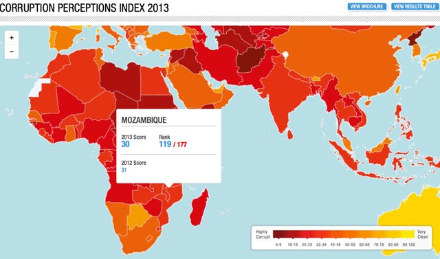 O Botswana está na primeira posição dos 10 países africanos menos corruptos enquanto a Somália continua a ser a mais corrupta do continente, segundo o relatório de 2013 da Transparência Internacional (TI) divulgado, terça-feira (3). Moçambique perdeu um ponto, mas avançou no ranking, passando para o lugar 119.