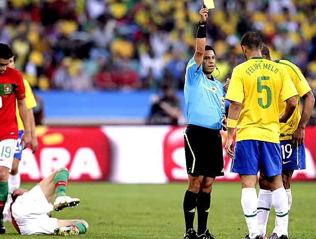O Brasil continuava sem criatividade para chegar com perigo a baliza de Eduardo enquanto os lusos com passes longos iam criando algum perigo. Num desses lançamentos longos quase a isolar Ronaldo, Juan intercepta a bola com mão e vê um amarelo. Foi a confusão geral os jogadores e o banco técnico português pediram o vermelho mas acabaram por apanhar um amarelo para se acalmarem, Duda viu o cartão.