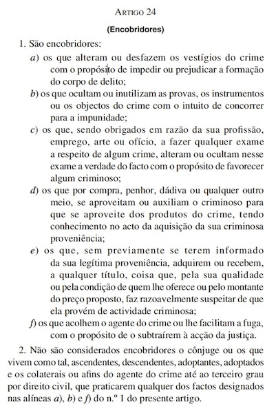 De acordo com os causídicos, este crime, também conhecido como lavagem de dinheiro, consiste é a transformação, por via de actividades criminosas que visam a dissimulação da origem ou do proprietário real dos fundos, dos proventos resultantes de actividades ilícitas, em capitais reutilizáveis nos termos da lei, dando-lhes uma aparência de legalidade.