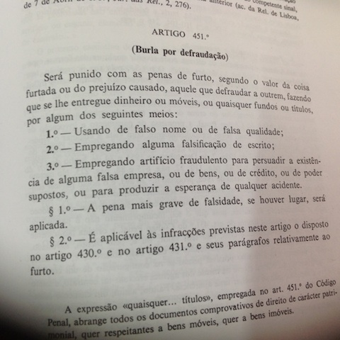 TERCEIRO, burla por defraudação, previsto e punido pelas disposições conjugadas dos artigos 451 e 421 do antigo CP e actual C.P no artigo 299.
