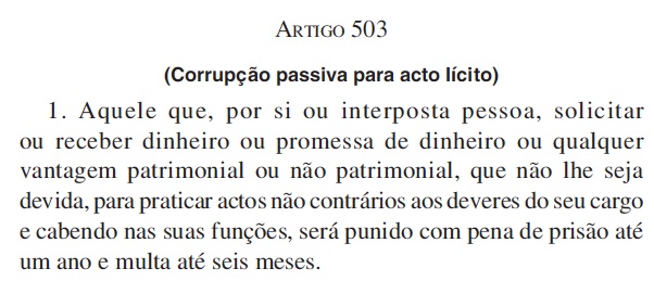 SEGUNDO, corrupção passiva para acto lícito, previsto e punido pelo artigo 503 n.º 1 do actual CP;