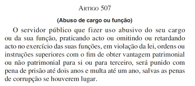 QUARTO, abuso de cargo ou função, previsto e punido pelo artigo 507 do actual CP;