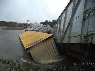 submersa num troço onde um comboio acabou mesmo por descarrilar.
