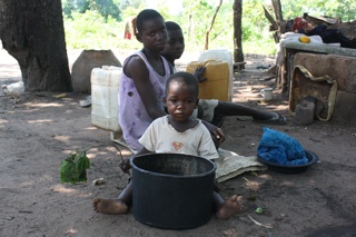 É a primeira e a última refeição do dia. Há três dias que esta família não sabe o que é jantar, aliás, situação que se repete frequentemente. O recipiente de farinha de milho – um balde de plástico – está vazio há uma semana, e dona Maria explica que já não tem mandioca e milho para vender na vila de modo a obter mais daquele produto.