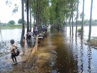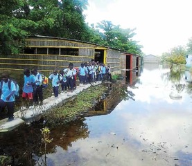 Num país onde os gestores do Estado têm 725 milhões de dólares para executar um projecto de construção da ponte Maputo/Catembe, não há dinheiro para resolver problemas básicos e assegurar que as crianças não estejam impedidas de gozar do seu direito de instrução. Há 30 dias, a chuva inundou a Escola Comunitária e o Centro Arco-Íris da Machava, no bairro Nkobe, no município da Matola, e causou danos enormes aos gestores dos dois estabelecimentos erguidos com base em caniço. As camaratas e outros compartimentos ficaram alagados. O terreno onde as instalações se encontram é uma “ilha” e só através de tambores, que funcionam como canoas, se pode ter acesso às instalações.