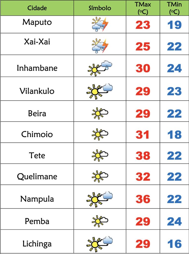 Eis as temperaturas previstas para esta quinta-feira(30), 1271 dia em Emergência de Saúde Pública em Moçambique: