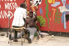 Encontrámo-lo no cruzamento entre as Avenidas Guerra Popular e 25 de Setembro a manusear o seu telemóvel. Celso Titosse Muthembo, 30 anos, casado e pai de um filho, refere que começou a procurar emprego em 2004 “porque tinha família por sustentar”.