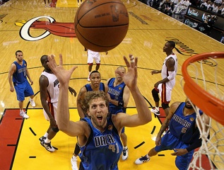 Com apenas três pontos no primeiro tempo, Nowitzki adicionou outros 18 no segundo, incluindo cestos importantes na reta final. Ainda pegou 11 ressaltos na noite em que realizou o sonho da vida. Eleito o melhor jogador das finais, deixou a quadra surpreendentemente quieto assim que a última sirene tocou, sem esboçar sequer um sorriso.