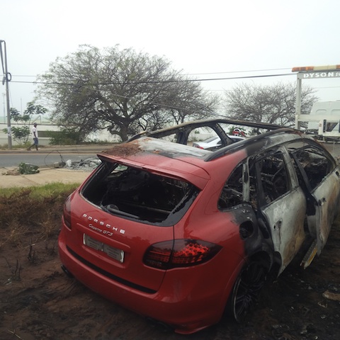 Na Cidade de Maputo, na madrugada de domingo, uma viatura de luxo e de alta cilindrada despistou-se na Praça do Destacamento Feminino tendo destruído um poste de iluminação pública e pegado fogo em seguida.