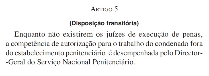 Um outro grande desafio que a aplicação das medidas e das penas alternativas enfrenta é referente a quem deve autorizar. O legislador, numa disposição transitória, indica no artigo 5 que: “Enquanto não existirem os juízes de execução de penas, a competência de autorização para o trabalho do condenado fora do estabelecimento penitenciário é desempenhada pelo director-geral do Serviço Nacional Penitenciário.”