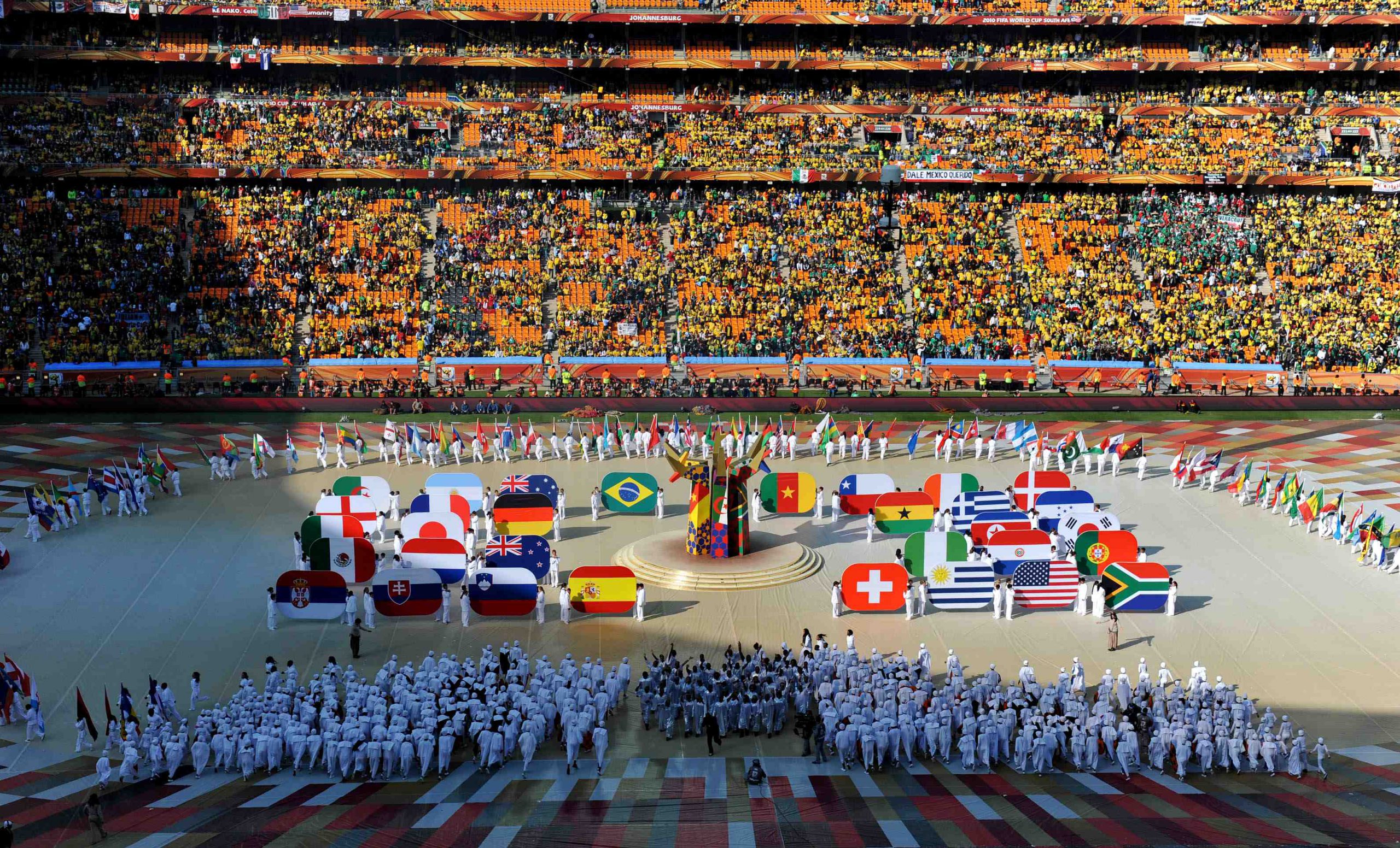 Cinco falcões prateados rasgaram o céu do estádio, largando fumo com as cores da bandeira sul-africana, levando o público ao delírio. O momento que a Àfrica do Sul esperava há mais de 2218 dias havia chegado. “Amigos africanos, hoje nós reescrevemos a história porque trouxemos o Mundial para o nosso continente”, clamou Zolani Mkhiva, jovem praticante de uma das mais antigas tradições orais da África, o kubonga (canto de louvor).