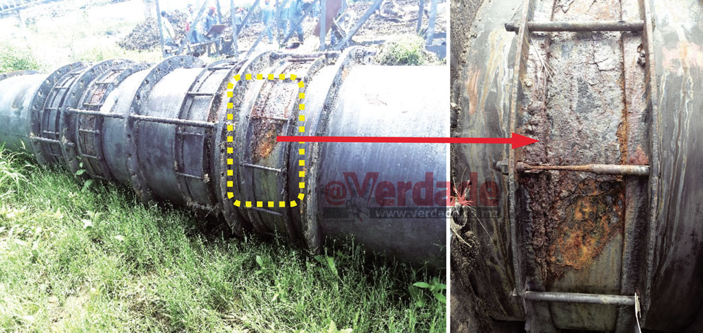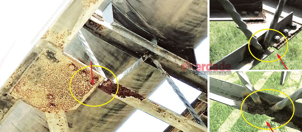 Foi revelado a jornalistas nesta quinta-feira (19) que as estruturas de apoio das condutas na ponte, transversinas em treliça, “tem problemas de corrosão”.