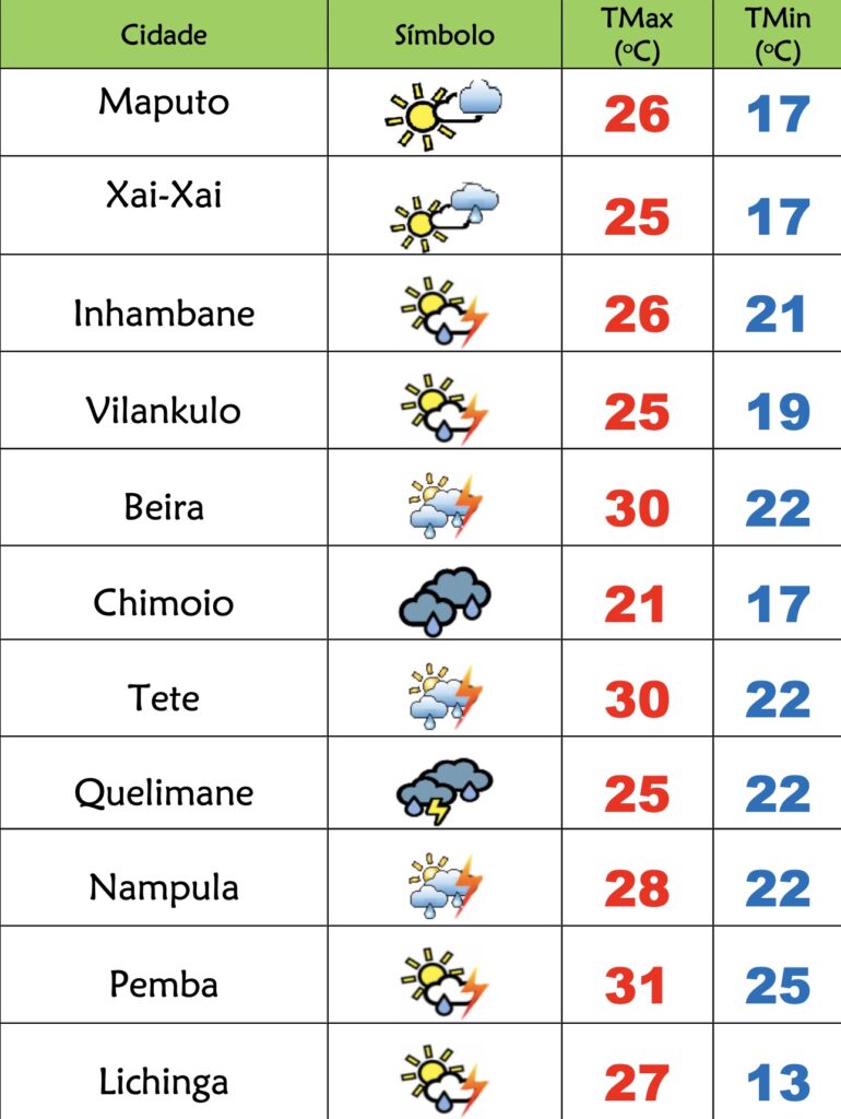 Eis as temperaturas previstas para esta terça-feira(18), 1290 dia em Emergência de Saúde Pública em Moçambique: