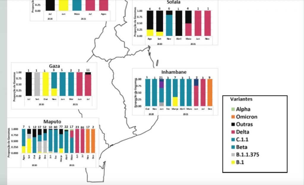 Inicialmente detectada na Cidade de Maputo em Novembro de 2021 a variante Ómicron do novo coronavírus “rapidamente tornou-se a variante dominante em Moçambique” de acordo com o Instituto Nacional de Saúde.