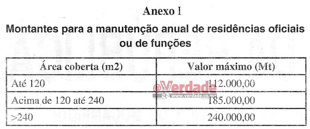 Há poucos meses da mudanças dos titulares de cargos governativos, mesmo que nas eleições de Outubro o vencedor seja o partido no poder desde 1975, o Executivo de Filipe Nyusi decidiu impor alguns limites e critérios objectivos “a observar na reparação, manutenção e apetrechamento de residências oficiais ou de funções”, com efeitos desde o início de 2018. As manutenções não podem exceder os 240 milhões de Meticais enquanto as reparações estão limitadas a um máximo de 1,2 bilião de Meticais.