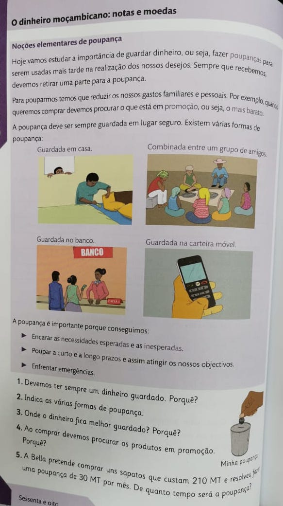 Os exercícios estimulam a elaboração de orçamentos, a comparação de preços e as meninas e meninos aprendem a importância da poupança.