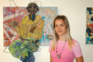“Trouxe 45 trabalhos, mas já sei que não vou ser todos montados”, esclarece Brana, pintora sérvia que chegou há dois anos a Maputo com o seu namorado que trabalha no corpo diplomático italiano.