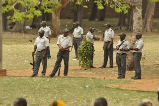 Apesar da manifestação ter sido autorizada, segundo afirmou o presidente do Fórum dos Desmobilizados de Guerra(FDG) Hermínio dos Santos, uma forte presença policial está no local onde decorre a manifestação.