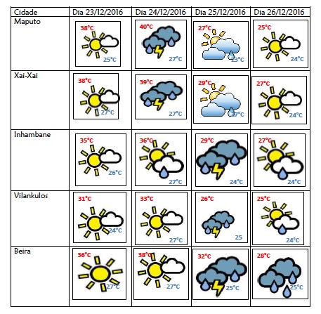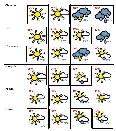 O Instituto Nacional de Meteorologia prevê tempo fresco em todo País durante o próximo domingo(25), Dia da Família moçambicana. Nas províncias de Inhambane, Sofala, Manica e Zambézia há previsão de chuva.