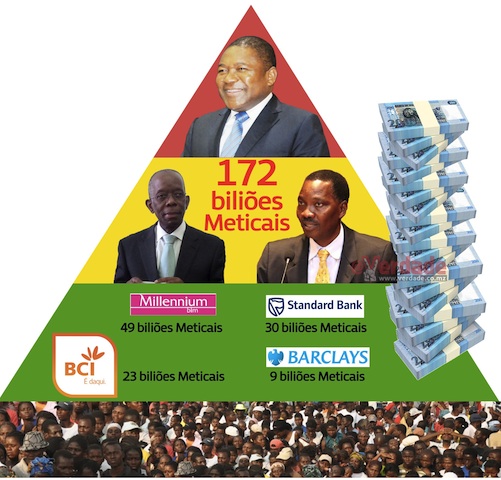O Governo de Filipe Nyusi que clama estar a realizar uma “gestão rigorosa da dívida pública” continua a endividar os moçambicanos, condicionado pelos empréstimos ilegais em buscar financiamento no estrangeiro colocou no mercado mais 1,2 bilião de Meticais em Títulos dos Tesouro e elevou a Dívida Interna Pública, que em 2015 totalizava apenas 69 milhões de Meticais, para 172 biliões de Meticais.