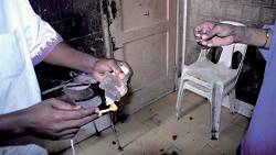 Toshmeni Lihuca tem 35 anos e é pai de 4 filhos, alguns dos quais frequentando o ensino primário nas escolas circunvizinhas do Bairro de Benfica, onde moram com a mãe, o pai e avós. Natural de Marracuene, província de Gaza, Lihuca veio para Maputo para fugir à guerra civil que naquela época dilacerava o país. Lihuca é vendedor ambulante de CD´s e a esposa possui uma banca à porta de casa, onde vende tomate e óleo alimentar. Diariamente, com a receita da venda dos discos, consegue obter cerca de 700 meticais, o bastante para comprar um connection – consórcio entre dois consumidores de drogas – que lhes permite adquirir um pintcho – porção de droga. O que sobra garante a alimentação em casa. Lihuca entrou num mundo da droga pela mão do amigo Paíto, que já era consumidor. “Quando entrei nisto, um “pintcho” de cocaína ou heroína custava 50 meticais. Agora não se consegue nada por menos de 100 meticais.” Segundo Lihuca, a “paulada”, ou seja o tempo durante o qual se encontram alheados de tudo, dura 30 minutos. “Sinto uma grande animação. Não encontro palavras para descrever a sensação.” Quando termina um pintcho de 100 meticais vai dormir mas por volta das 10 horas do dia seguinte volta à Colômbia para comprar outro. “Se não o fizer vou passar mal. Sinto muitas dores no corpo todo. Às vezes, sai-me ranho do nariz, perco o apetite, entre outras consequências. Ontem, por exemplo, não fui à Colômbia, por isso mesmo não conseguí dormir. Tive de madrugar para comprar um outro pintcho.” Ao contrário de muitos outros consumidores, Lihuca gaba-se de nos oito anos de consumo nunca ter roubado nada para adquirir drogas. Segundo ele a maior parte dos vendedores não é consumidor. “Eles [os vendedores] limitam-se a transacionar o produto, enriquecendo com a desgraça do consumidor que chega a trocar tudo o que tem pela droga. Muitos deles ganham 3 mil meticais por dia.” Alice [nome fictício], reside na Colômbia, diz que já viu de tudo neste bairro. “Às vezes, quando sentem fome e não têm dinheiro, pedem restos de comida aos moradores que lhes parecem ser mais simpáticos. Vivem de refrescos, biscoitos, bolachas, sumos… essas coisas simples. Quando falo com eles e os aconselho a sair das drogas dizem- me que não podem porque quando não consomem sentem dores em todo o corpo, a ponto de não aguentar caminhar. Entrar é fácil. Sair é que é quase impossível. Alice já viu muitas mães adoecerem devido ao desgosto de ver os seus filhos a afundarem-se.” E acrescenta: “muitos procuram reabilitação mas, como são indivíduos de baixa escolaridade, nem sabem onde procurar aconselhamento.”