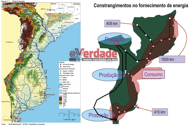 Questionado pelo @Verdade, durante um encontro que aconteceu recentemente com jornalistas em Maputo, o Administrador da EDM revelou que: “A questão da linha da espinha dorsal era dimensionada para Tete-Maputo mas neste momento o objectivo é centrar na linha Temane-Maputo, com implementação de uma central de 400 MW a partir de Inhambane”.