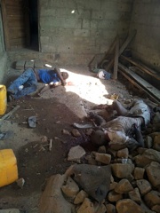 A residência de Simeão Mucavele, que ficou sem dois membros de acordo com testemunhas oculares, continua intacta. O que contrasta com os corpos de Cossa e o indivíduo ainda por identificar sem vida no chão da varanda da casa de bloco cru que a falta de dinheiro não deixou concluir.